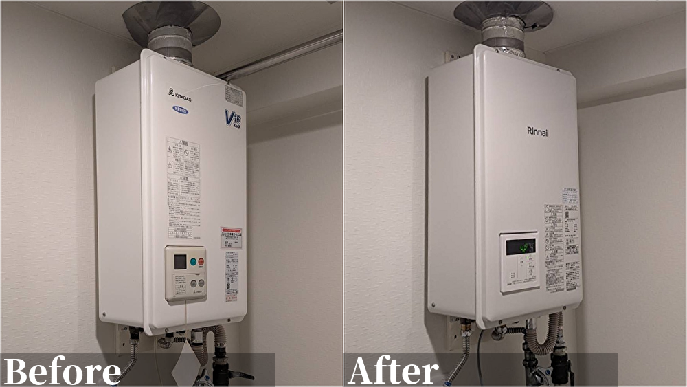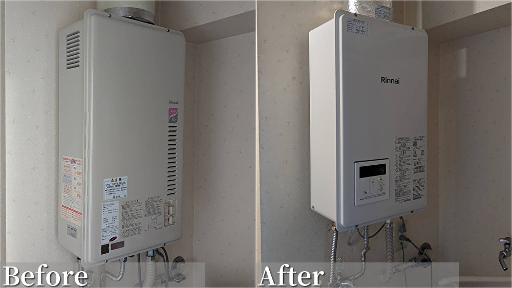 交換前(Before):KHR-613FEA-L交換後(After):RUX-1615SWFA(B)E 施主様支給品もしくは他者購入品の工事のみのご依頼の場合、税込み金額¥33,000-。(※1)また排気筒工事必要な場合も別途見積りいたします。 (※1):給湯専用のみの価格となります。... -