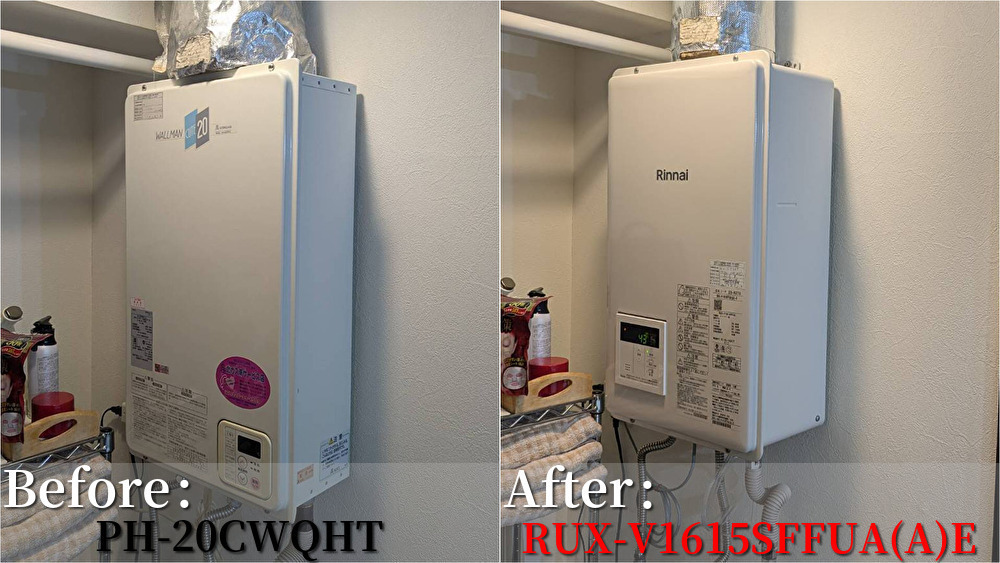 ¥99,000税込~(本体+標準工事費含む) 交換前(Before):PH-20CWQHT交換後(After):RUX-V1615SFFUA(A)E 施主様支給品もしくは他者購入品の工事のみのご依頼の場合、税込み金額¥33,000-。(※1)また排気筒工事必要な場合も別途見積りいたします。... -