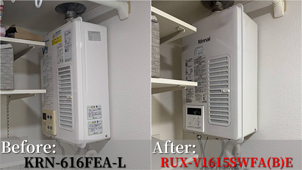 (※当社施工事例ページより~Before:YV1660FF ➡ After:GQ-1617AWX-FFA-DX)
