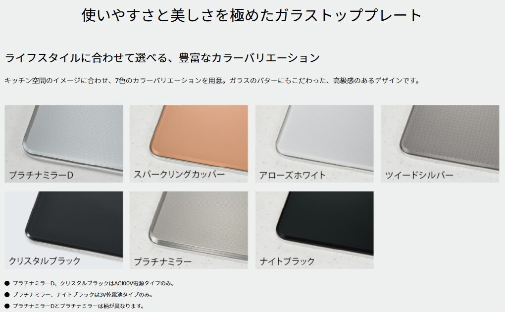 「黒は汚れが目立つ」「白は焼け跡が気になる」など、ガラストップはデザイン性が高い分、色による使用感の違いが大きい傾向があります。