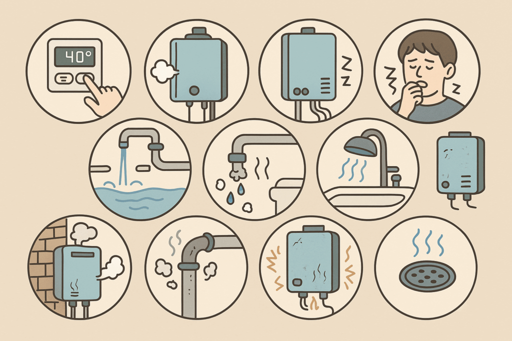 お湯が出ていても「安心」とは限りません。以下のような条件が重なると、給湯器の寿命が迫っている可能性が高いです。